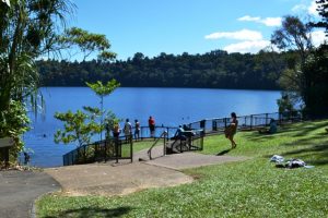 Hallorans Hill is a volcanic crater with a 360 degree panoramic view, take a five minute drive from the Atherton Visitors Centre on Main Street or you may walk to the lookout, around 90 minutes for a return trip, the walking track starts at the environmental Park next to the Atherton hospital in Louise street. Walk up the side of this extinct volcano and you will see a curtain fig, miniature waterfalls, rock pools and rainforest, look for bush turkeys, birdlife, lizards, wildlife and on occasion the elusive tree-kangaroos, (a kangaroo that climbs trees), have been sighted. Take in the view of the Atherton Tablelands, Lake Tinaroo, The Seven Sisters, volcanic hills prominent on the flat plains recognisable as 45-60 meter high cinder cones, extinct volcanoes, and a splendid view of the western side of Queensland’s highest mountain, Mt Bartle Frere, and Bellenden Kerr, the second highest Mountain in Queensland, the